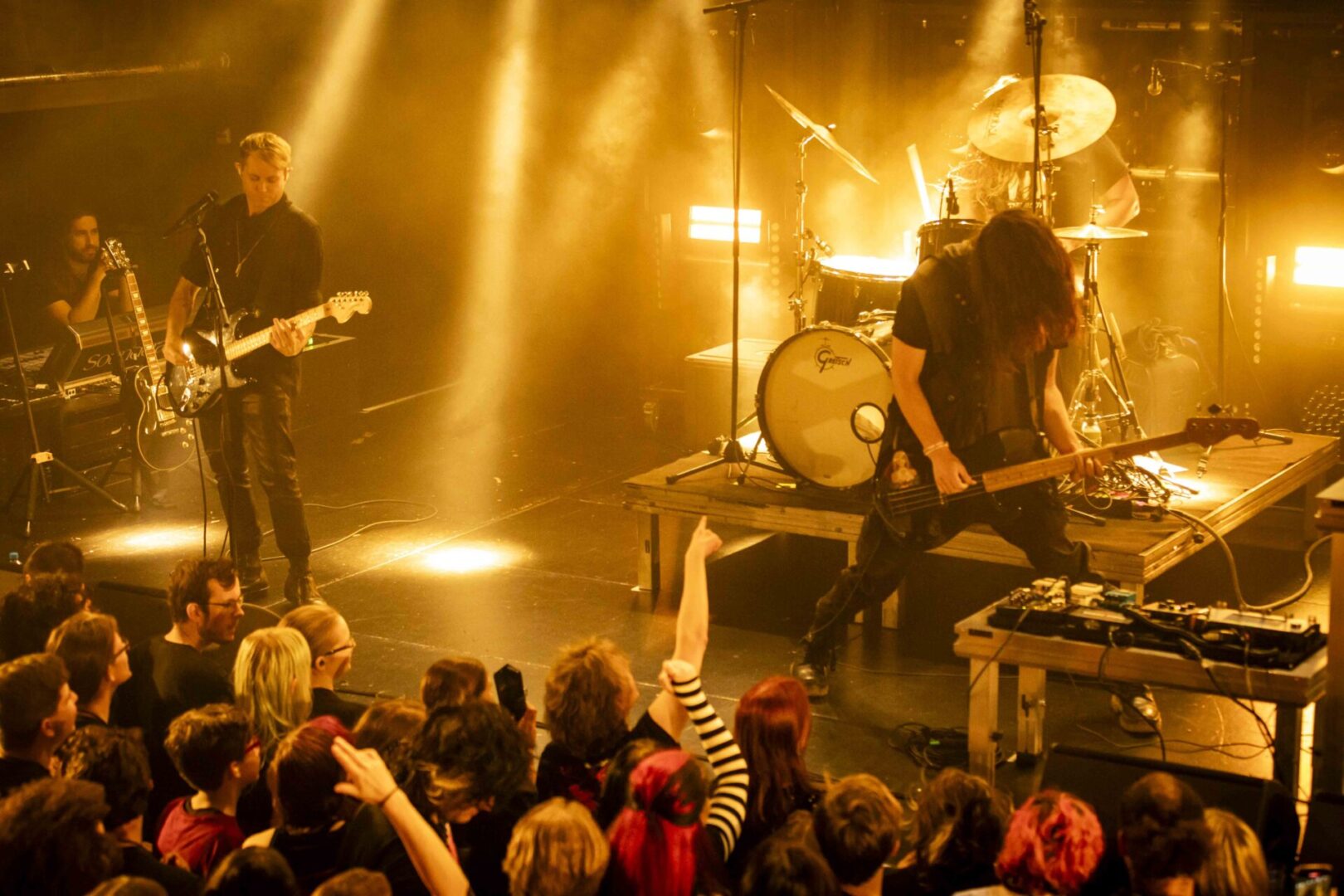 De song op tape die de opkomst van de hoofdact aankondigde was A Cruel Angel’s Thesis van Yoko Takahash. Ons onbekend, maar door de sfeer die ontstond en de anticipatie in de zaal wel een kippenvelmoment. De intro werd gevolgd door het instrumentale Pain van Health, dat ook van tape werd afgespeeld, tot uiteindelijk de band het podium betrad en de set aanvatte met Identity. De zaal was direct volledig mee. We zagen een gemengd publiek. Overwegend zwart gekleed, en een mix van jonge mensen, meisjes met zwarte lippenstift, en grijze hoofden. Veel bandshirts en hier en daar een pluche rat, verwijzend naar de nieuwe plaat. Een uitverkochte zaal die er ontzettend veel zin in had, net als de band. Zoveel was duidelijk.