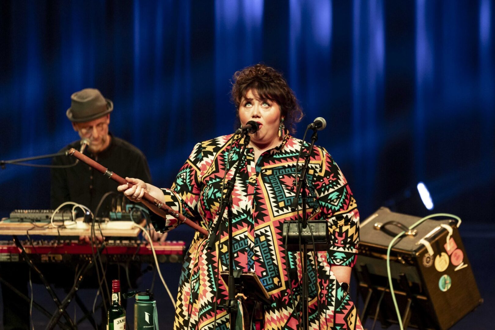 De dwarsfluit van de zangeres zorgde voor een extra laag in de muziek en het was opvallend hoe vlot ze kon schakelen tussen het zingen en het instrument. Tussen de nummers door kregen we humoristische oneliners, die soms een maatschappijkritische ondertoon hadden. Ríoghnach wandelde rond op het podium, verdween geregeld, dronk uit een tas,…Een muzikaal intermezzo naar het einde toe werd dan ook gebruikt om op een humoristische, entertainende manier de merchandise door de band te laten promoten.