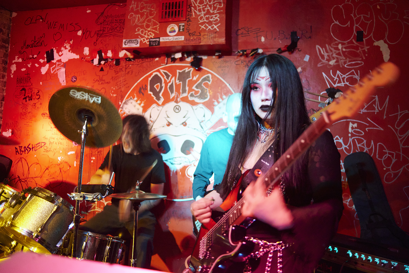 Soit, eenmaal de kaarsen aan vloog het trio er meteen in. Jammer genoeg veel te luid. Zeker de zang van de gitarist en de bassiste was er helemaal over. Altijd hetzelfde. Eerst oordoppen inpluggen en dan de boel veel te luid zetten. Weg met die oordoppen. Het geluid zal des te beter zijn. Het is de Pit’s he, geen galmbak met een mengtafel voor het podium en nog een voor de zaal.
