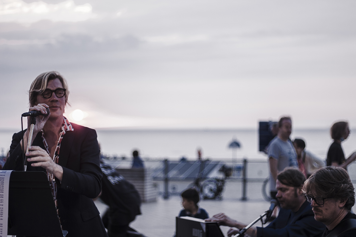 Dichters en romantiek. Een onsterfelijke combinatie. Terwijl het terras van galerie Beau Site volstroomde met fans en nieuwsgierigen, wachtte de groep tot de avondzon vanachter de wolken vandaan kwam en het strand van Oostende in een oranje gloed onderdompelde. Dichters dansen wel, bewezen Jan Ducheyne en co. Tientallen voorbijgangers op de dijk achter hen stopten, luisterden en dansten.
