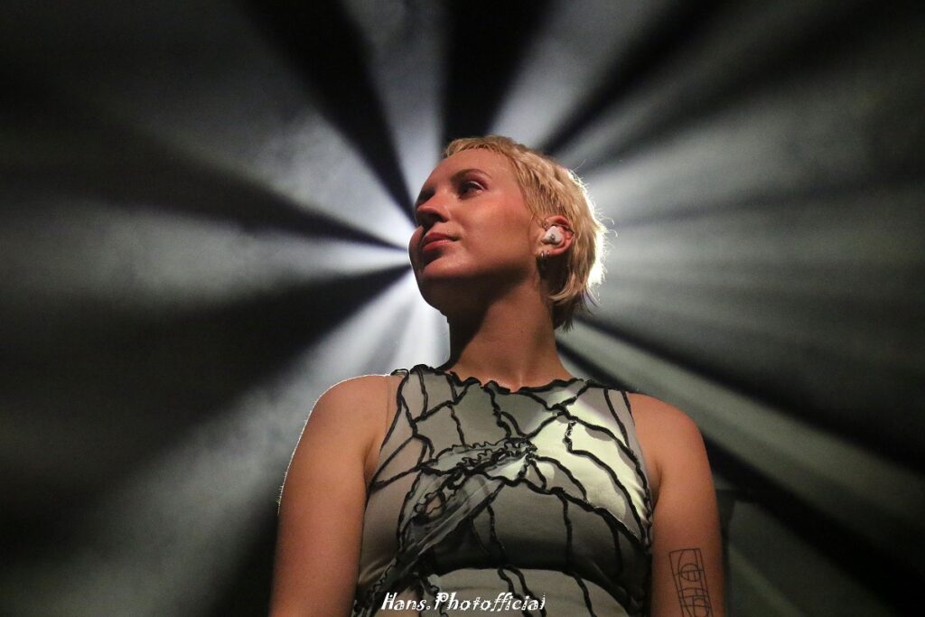 Zo was Kaats favoriet, Projectje, een stevige rocker hoewel het een breekbaar ingetogen nummer is op de ep. We waren diep onder de indruk. Het Noodlot tartte ons verder met het meeslepende liefdeslied dat deze titel droeg. Voor Tekens Van Leven kwamen we crewhanden en –voeten te kort om de piano gezwind tot bij Kaat te rollen, maar in een fraaie lichtbundel was dit een welgekomen rustmoment voordat de zinderende finale werd ingezet. Ken Je Dat? klonk als haar interpretatie van een gedreven T.C. Matic en met Vieze Vlinder ontpopte de rups zich tot een podiumbeest. ‘Ik doe aan metamorphose. Ik verander in een vieze vlinder. Ik ben mezеlf maar ik heb totaal geen filter’. Natuurlijk wisten alle fans hoe het werkt, want “recht tussen Kaats benen zal er altijd iets mankeren, maar dat is nog geen reden om het spel niet meer te spelen.”