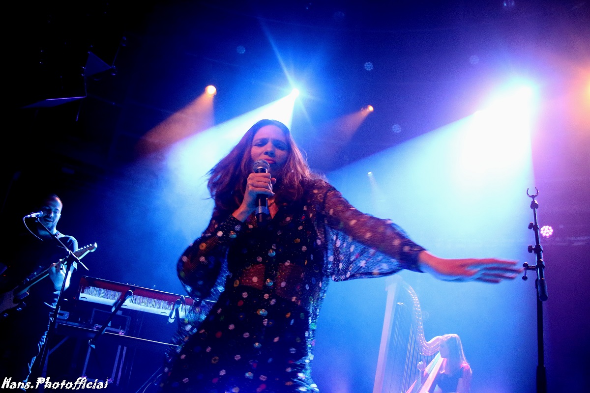 Heel knap en erg emotioneel beklijvend was Vertigo waarvoor Olympia vooraan het gezelschap kreeg van Gabriel, Alice en ook Morgane (MoHa). A capella werd op heerlijke manier een geweldig stukje samenzang ten berde gebracht. Straffe kost dit. Het vormde een verrassend stukje break in wat ervoor en erna uitmondde in een soort eighties popdansfeestje. Daar bleef het echter niet bij want Olympia zette alle nummers kracht bij door als gek over het podium te springen en kronkelen, pirouettes draaiende percussie te spelen en op versterkers te klauteren. Ondanks deze best wel enorme fysieke inspanningen moest ze nauwelijks naar adem happen en bleef nagenoeg perfect zingen. Nog straffere kost dit.