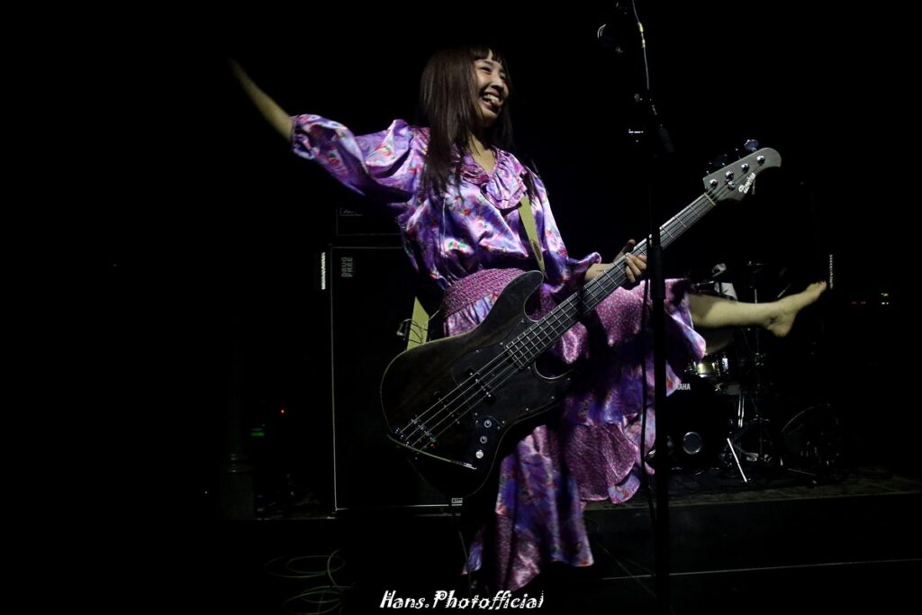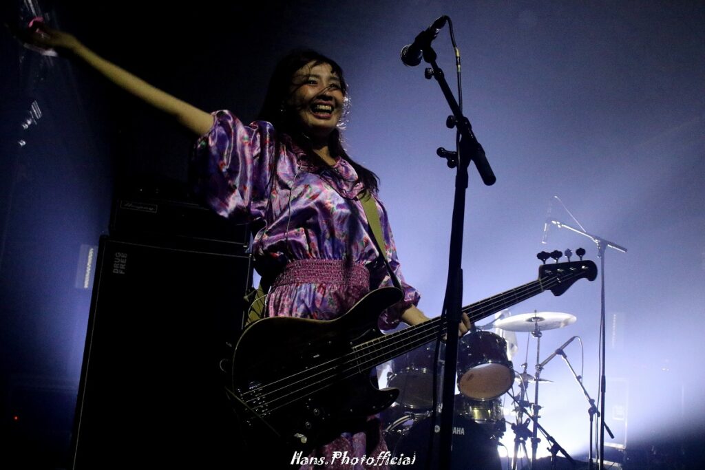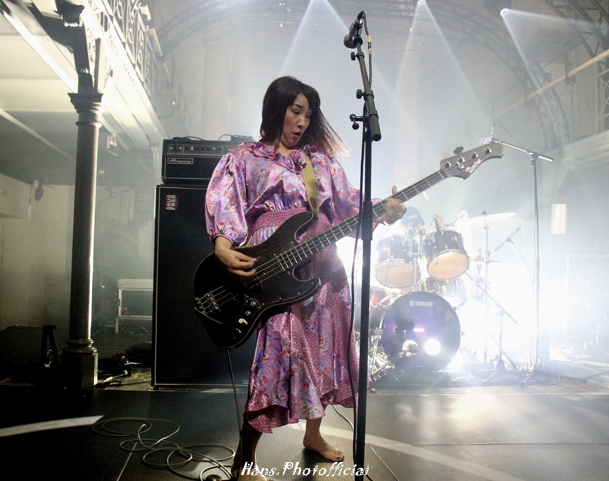 Dramatic, van het recentere Awakening: Sleeping was ook deze keer de meest aan Slowdive te linken song waarbij de nochtans goedlachse Ogura de haren voor de ogen liet hangen en verbeten verder speelde. Hun Engels is wel nog niet geëvolueerd. Vrij veel fans leken een aardig mondje Japans te verstaan en spreken wat Miyamoto vooral inspireerde om ganse lappen bindteksten in het Japans af te steken. Ze bleef wel om de haverklap ‘obrigado’ zeggen en bracht voortdurend het hartjessymbool met beide handen. Ogura telde zelfs eens af op zijn vingers bij een bedankingsrondje en het roepen van “big heart”. Ze hadden blijkbaar ook lekker gegeten want de spinaziesoep had indruk gemaakt op Miyamoto. We zaten dan middenin het steviger gedeelte van het optreden. De Thurston Moore in de band kwam helemaal tot ontbolstering tijdens het ronduit fenomenale en epische pronkstuk 1960.