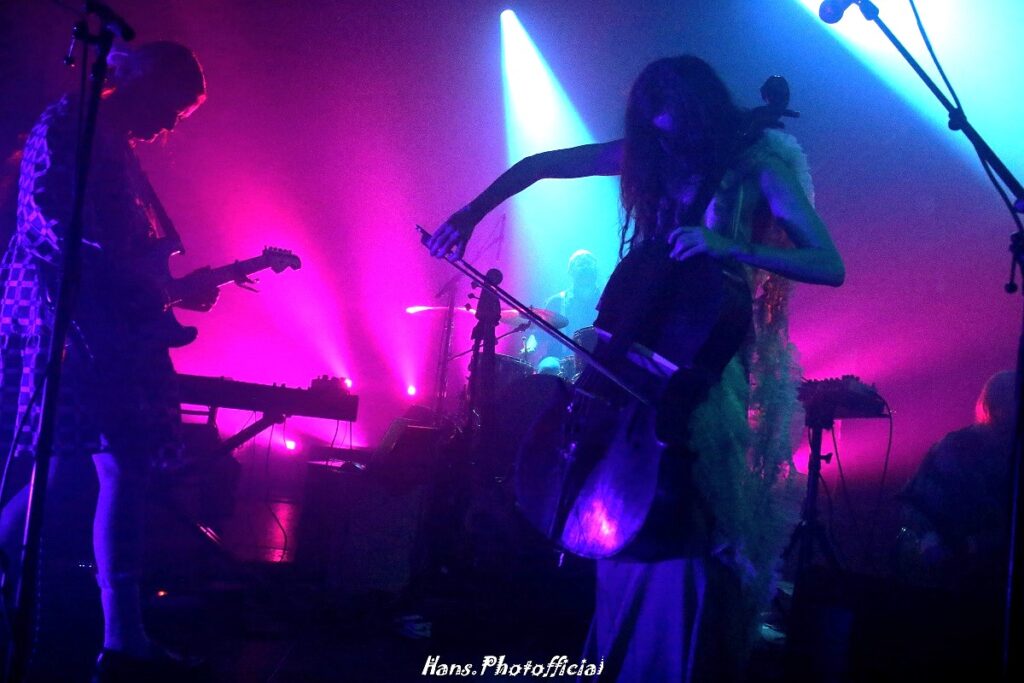 De centrale figuur op het podium is een oude bekende voor de twee oprichters. In 2013 bracht Múm haar zesde album, Smilewound, uit en dat werd gevierd met de terugkeer van Gyða Valtýsdóttir op zang en cello. We zijn 12 jaar later en album 7, History Of Silence, kwam onze herfst opvrolijken. Smárason vertelde dat hoofdzakelijk uit deze plaat geplukt zou worden, hun rustigste plaat ooit die daarom ook bewust het woord stilte in de titel draagt. Múm is muzikaal overigens een bijzonder unieke band die een enorme waaier aan stijlen vervormt tot een sprookjesachtig geluid. Denk aan folktronica, art pop, ambient, shoegaze en postrock. Naast de bliepjes uit de toverdoos van Tynes viel vooral de cello van Valtýsdóttir op. Uiteraard gold dat ook voor de beeldige elfjesjurk waarin de celliste alternerend in het schemerdonker en het spotlicht stond te musiceren.