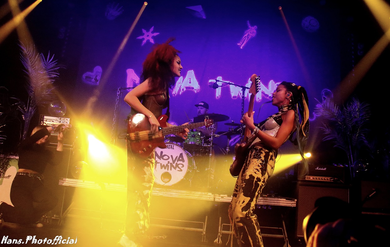 Af en toe zijn er van die concertavonden die op papier boven de kalender uitsteken. Deze week was er zo een avondje dat we niet alleen in die categorie kunnen onderbrengen maar tevens in de rubriek ‘niet te missen’ kunnen rangschikken. Het was de Botanique die een optreden kon strikken van de hiphop/metal-sensatie Nova Twins uit Londen. Hieronder volgt breed uitgesmeerd hoe bassiste Georgia South en gitariste/zangeres Amy Love het in Brussel stelden tijdens het eerste luik van hun niets ontziende veroveringstocht van het Europese vasteland. In juli staan ze op zondag op Rock Werchter en we schrijven nu al op dat ze hierna enkel nog te bewonderen zullen zijn in door Live Nation ‘gecontroleerde’ zalen. Nova Twins zorgen niet alleen op plaat voor een Supernova maar de dames tekenen ook op het podium voor een krachtige kleurrijke eruptie en ze zijn vooral rijp om als een niets ontziende supernova door het muzieklandschap te razen.