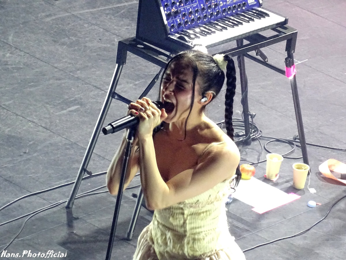 Het op zware electrobeats geschraagde Church Outfit maakte duidelijk dat Poppy voor een “vol gas en niet omzien” taktiek koos. Ze werd geflankeerd door een gitarist en een drummer hoewel de electrovondsten uit haar songs op tape stonden. Sommige van haar backing vocals ook maar het viel op hoe verrassend goed ze zong. Bite Your Teeth was de volgende muilpeer en het stukje in het nummer waarin ze schreeuwde om meteen erna ballerina-achtige danspasjes te etaleren was gewoon subliem en heel entertainend. Bad Omens hadden een felle lichtshow in twee verdiepingen klaargezet waarbij hun drummer op de eerste verdieping in de spotlights drumde. Het gelijkvloers had ook een mensenhoge “visual wall” die Poppy al kon gebruiken voor haar show. Dat maakte dat de felle nummers ook door een blitse opeenvolging van lichteffecten geruggesteund werden.