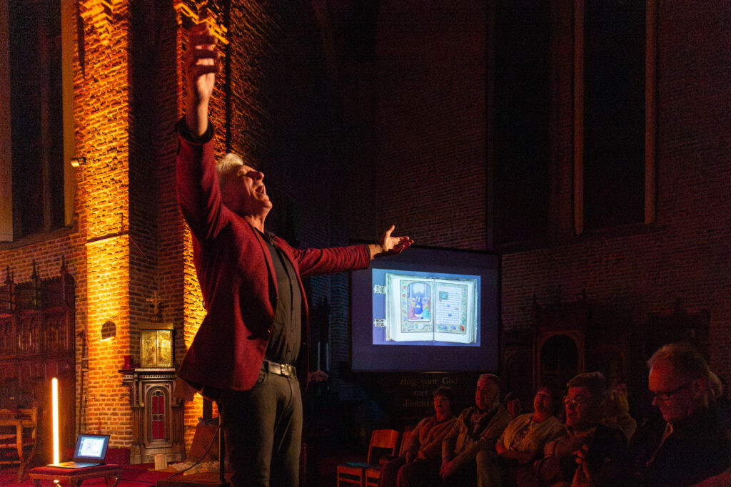 De kerk was lekker verwarmd en de klank- en lichtman had zich uitgesloofd: wat een mooi decor kregen we daar te zien!