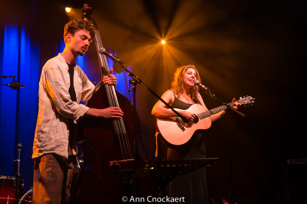 Daarna was het de beurt aan Marcelle, het project van Marte Truyers samen met Cedric op contrabas. De naam Marcelle is een ode aan Marcel, haar overleden haan, en aan alle nonkels met bierbuiken. hoe kan je daar nu niet nieuwsgierig van worden? Wat vooral bleef hangen, was Martes prachtige stem. Hoewel ze beweerde niet goed te zijn in bindteksten, kwam het allemaal erg naturel over. Haar songs vertelden verhalen, soms fluisterzacht, soms aan een sprankelend tempo. Af en toe waanden we ons zelfs in de wereld van Amy MacDonald. Intiem, folky en gewoonweg charmant.