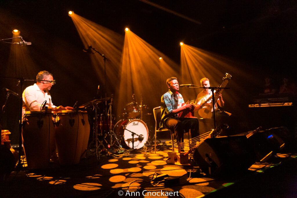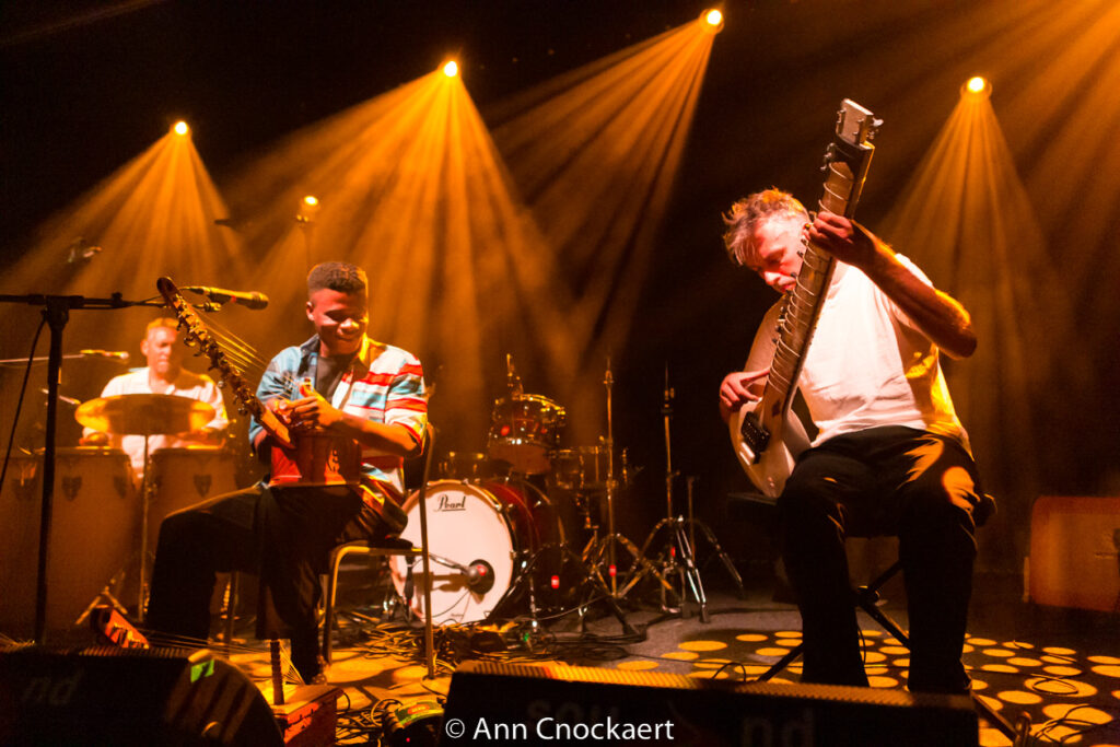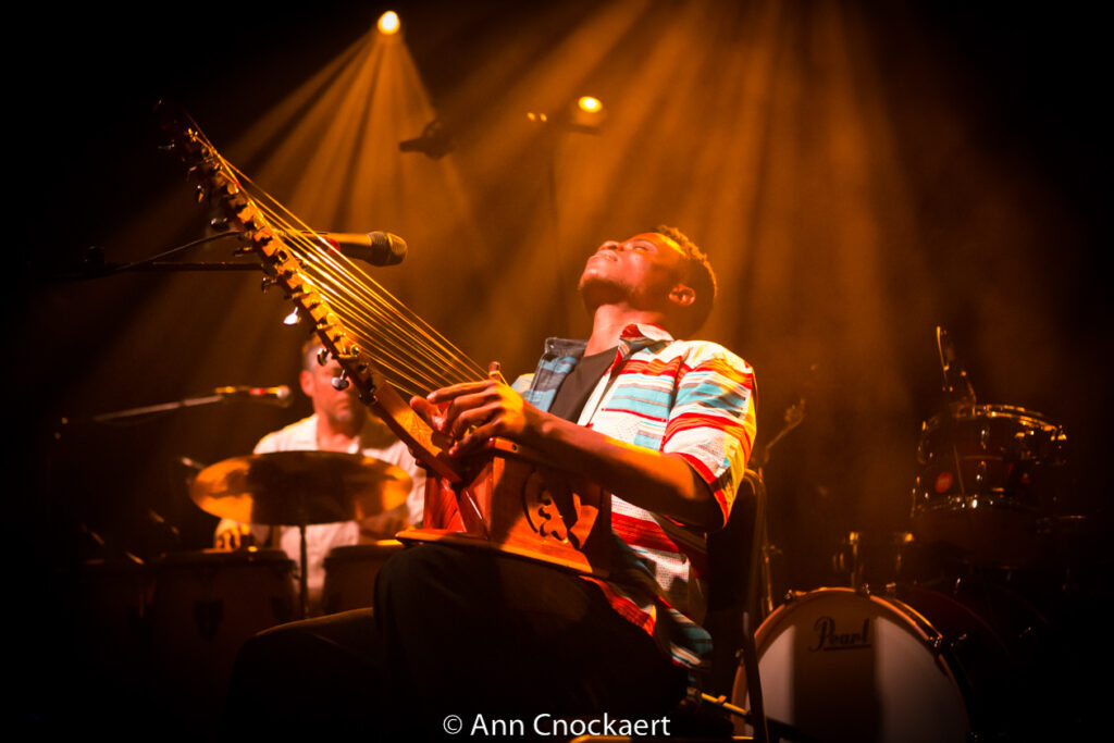 Daarna werden we ondergedompeld in een andere wereld met Nana Osei Twum Barima, een meesterlijk muzikant, zanger, percussionist en danser, diep geworteld in de rijke muzikale tradities van Ghana. Hij speelde op de seperewa, een Ghanese harp-luit met een resonerend, bijna hypnotiserend geluid. Zijn heldere, expressieve stem en de organische klanken van zijn instrumenten vormden samen een bezwerende ervaring. Voeg daarbij de sitar van Nicolas Mortelmans, en we waanden ons meteen in verre oorden.