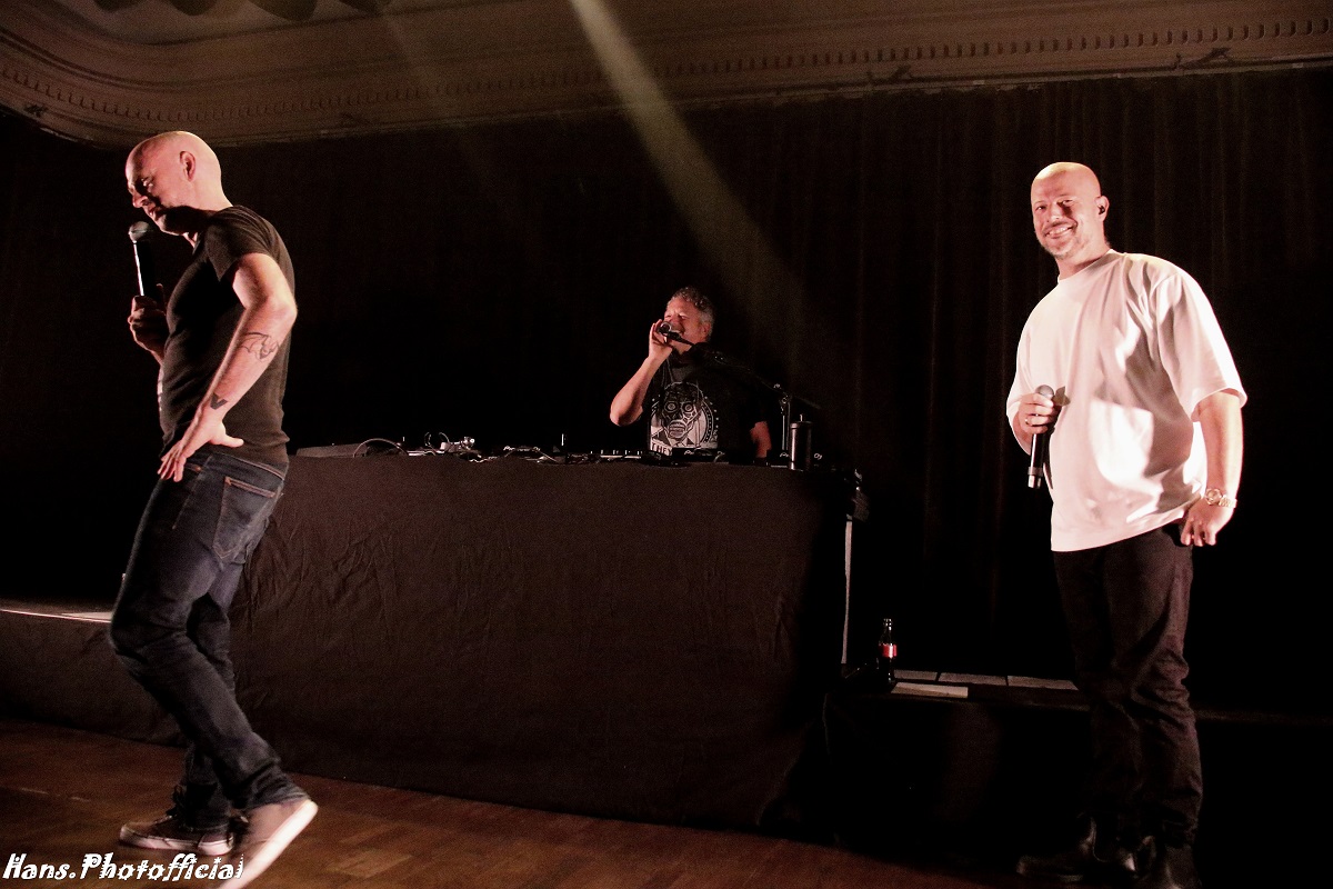 De Casino werd getrakteerd op een old school hiphop orgasme zonder visuals, zonder lichteffecten, zonder kostuums, kortom “zonder niet”. Het was net 25 jaar geleden toen we hen voor het eerst live zagen optreden op het Gentse Sint-Pietersplein in het voorprogramma van Osdorp Posse voor Rock Vlaanderen. Er leek in De Casino weinig veranderd. 4T4 mixte en scratchte In Den Behunne de tracks op meesterlijk vette wijze aan elkaar, het werd een passende ode aan de verslavende grooves die hun debuut zo onweerstaanbaar deed klinken. De ode aan Izzegem en aan zichzelf in “Wyder zyn ’t hof van commerce, de micro in oes pwôtn, ongelwôflikke stwôtn, steekn w’ût. ’t hof van commerce, gjille daagn bezig, geliek wuk da ter komt, wyder skjin niet ût.” We keken de zaal in en zagen alleen fans met een casinobrede glimlach.