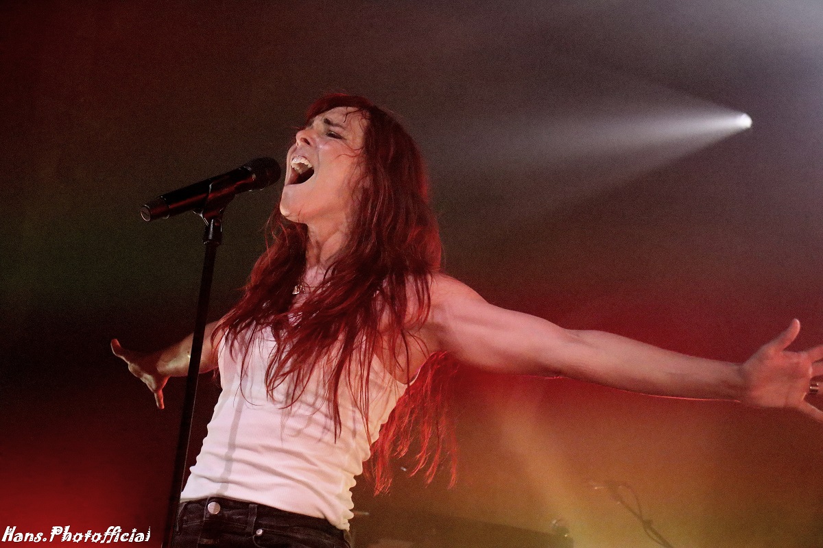 Het rode leren jasje heeft het niet lang uitgehouden. Wende was al na 2 nummers in de work-out die haar concert bleek te zijn kletsnat van het zweet wat ons respect met de minuut deed toenemen. Of wat had je gedacht als ze van start ging met Dit Is Alles. Een stevige rocksong waarvan er toch minder voorbij vlogen dan aanvankelijk gedacht. Hoe ze furieus zelf de metalgitaar omgordde was een binnenkomer vanjewelste. “Dit is alles, je kunt gaan” klonk uit haar hoge en scherpe stem erg bijtend. Natuurlijk is ze al decennialang fan van Kate Bush. We vermelden dit hier gewoon om wat duiding bij haar stemtimbre te geven want niet iedereen kent Wende. Wij nu wel want ze manifesteerde zich als een stuiterbal, een ongeleid projectiel en een hairflip queen.