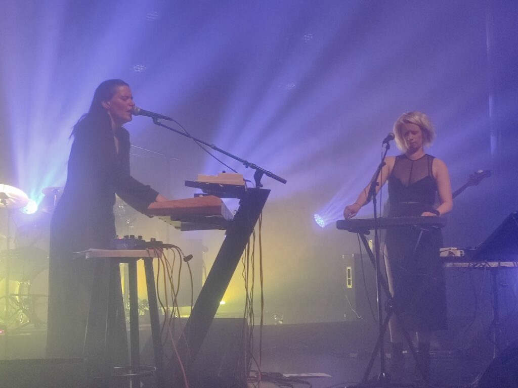 Wanneer de zaallichten opnieuw doofden, even voor de klok van tien, hadden we nog geen flauw benul van wat ons te wachten stond, behalve dan een ongetwijfeld sterke show van Himshe. De twee keyboardeilanden centraal vooraan op het podium, zeg maar de heimat van Mishi Erine en Naomi Sijmons, en het drumstel wachtten ons en de muzikanten op.