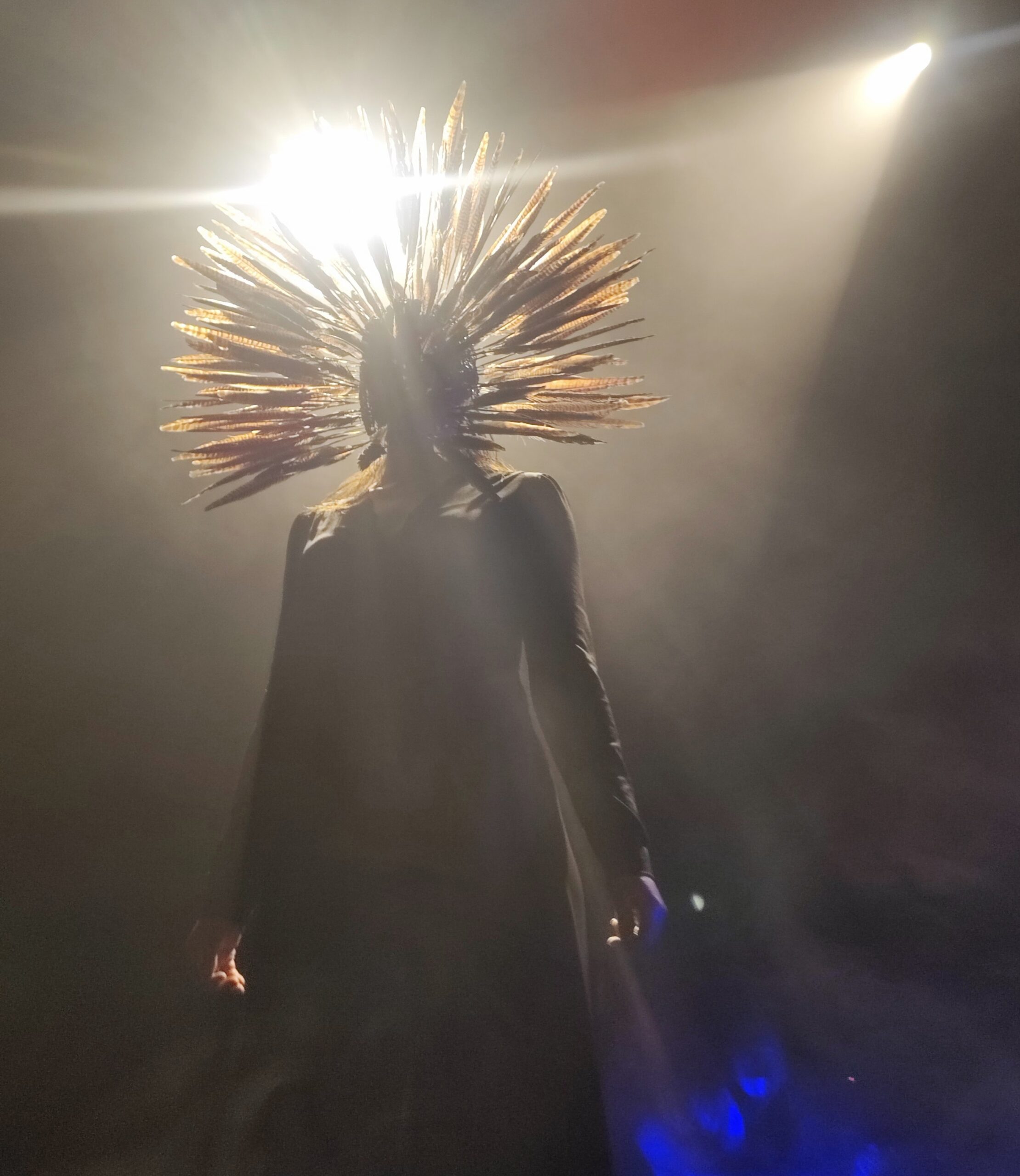 Plots weerklonk een stem door de zaal, in de ik-persoon ons verhalend over diens droeve lotgevallen. “Ik belandde in een mallemolen waar zelfs tijd zijn weg vergat, emotioneel zonk ik langzaam weg tot stilte”. Dreigend beklemmende muziek op de achtergrond. Terwijl waren twee mysterieuze silhouetten opgedaagd op het podium, getooid met veren op het hoofd, eerst amper bewegend, dan voorzichtig. Wanneer de passage “…het beeld van een gouden kooi en veren die zich losrukten alsof ze wisten dat ze ooit vleugels waren”, weerklonk, namen Mishi Erine en Naomi Sijmons de veren-tooi voorzichtig af, ze wandelden naar hun keyboards, terwijl de band losbarstte in een manisch en heftig Fiery Femme.