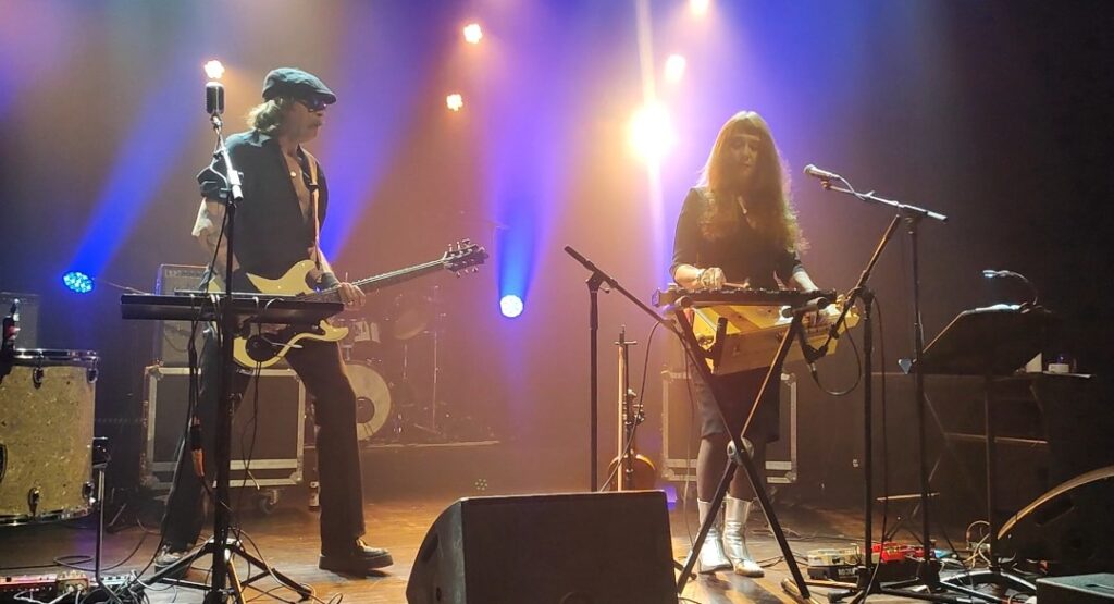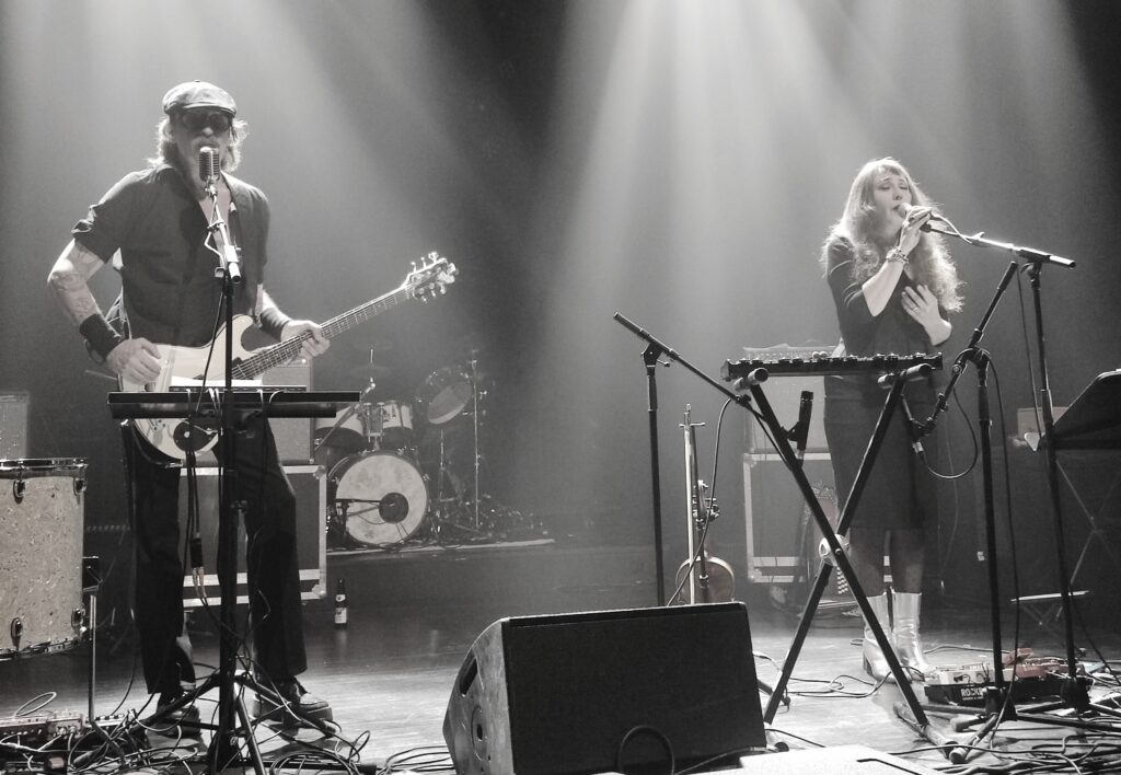Het duo trad om twintig voor negen aan en startte de set met indrukwekkende mooie a capella duozang. Waarna keyboards en effecten, glockenspiel, draailier en de (bas)gitaar het overnamen, mooi en groezelig. Ronduit machtig was Jericho, waarbij pompend luide drums eerst uit het kastje van Hacke kwamen, waarna die letterlijk luid op de trom sloeg. Zware eighties keys volgden, dan weer een geloopte baslijn, en ook de viool van de Picciotto droeg bij tot de aparte klankkleur. En toen deed de autoharp haar intrede in de set, uitmuntend ingezet door Picciotto in The Seventh Day. De machtig zuivere klanken van de autoharp, werden vergezeld door heavy keys en een heftige gitaarlijn van Hacke.