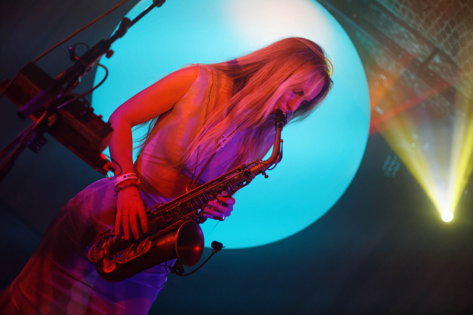 Maar het trio was makkelijk te overtuigen tot een bisronde en zo werden we nog getrakteerd op die wonderlijke single uit 2018: Lagoon. Jazzy, moody en rokerig? Check! Machtig mooi ook. Misch had nog een laatste verzoek aan haar gewillige publiek. Nu moesten we allen meer naar achteren gaan staan, “dan klinkt de sax mooi in het midden van de zaal”. Het was als Mozes en de zee. Iedereen dus op een afstandje, jawel het werkte. Met veel sensualiteit weerom perste Misch hemelse klanken uit haar saxofoon. Wat een lekkere track bleek Climb, en wat een vibe zeg!