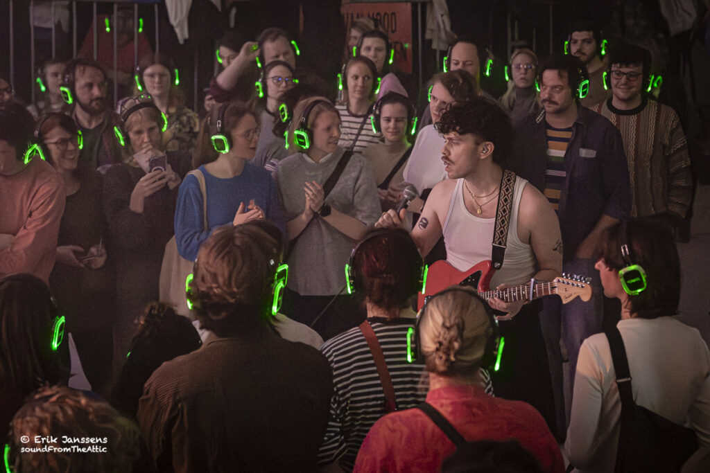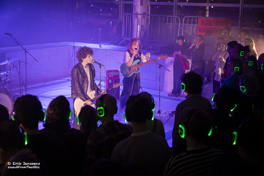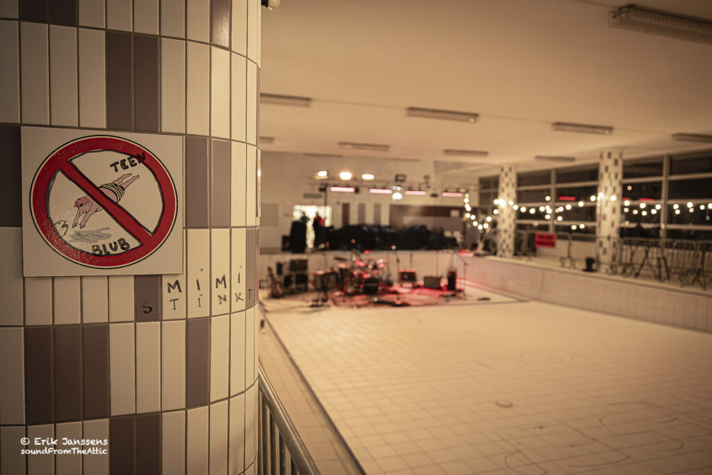 Zowel voor de bands als voor het publiek werd het een bijzondere ervaring: twee opkomende Belgische rockbands die een leeg zwembad omtoverden tot een intieme concertzaal, waar iedereen via een hoofdtelefoon dezelfde energie deelde.