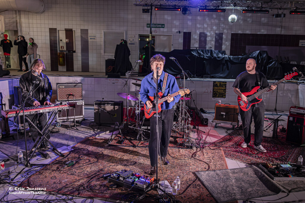 Ze openden hun set met hun recente single Heavy Hearts, gevolgd door nummers uit hun vorige ep en nieuwer werk zoals Where Is the Love At? en Hotel of Thoughts. In de huidige bezetting — Stijn Hofman (zang/gitaar), Kobe Walleghem (bas), Arthur De Bie (drums) en Flor Breugelmans (keys) — brengt de band een energieke mix die zowel op festivalweides als in een leeg zwembad overtuigt: rechttoe rechtaan rock zonder franjes.