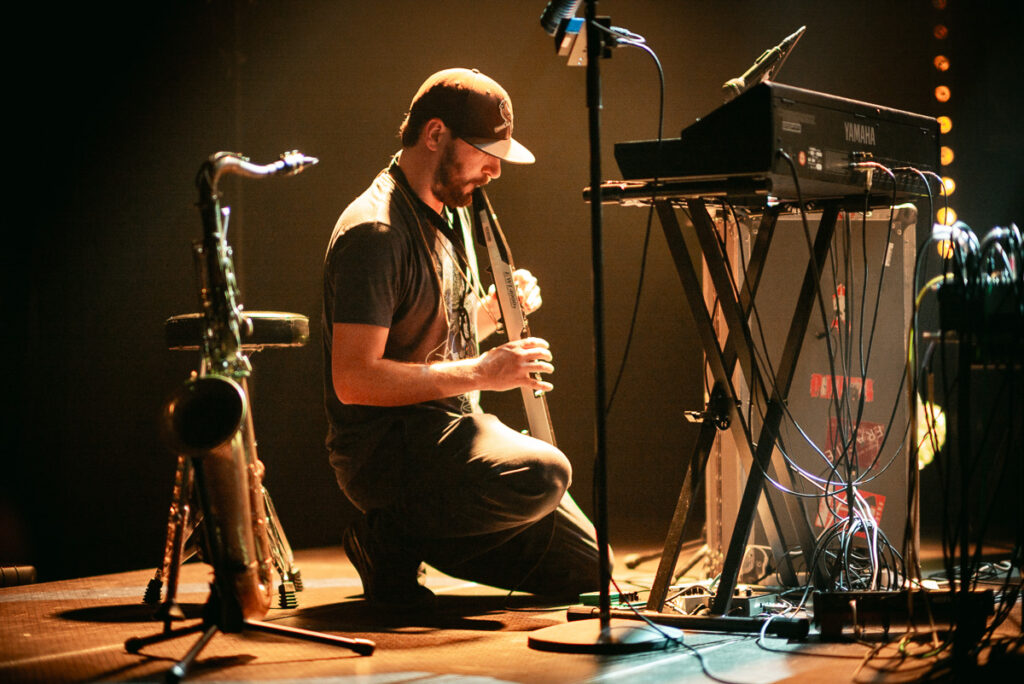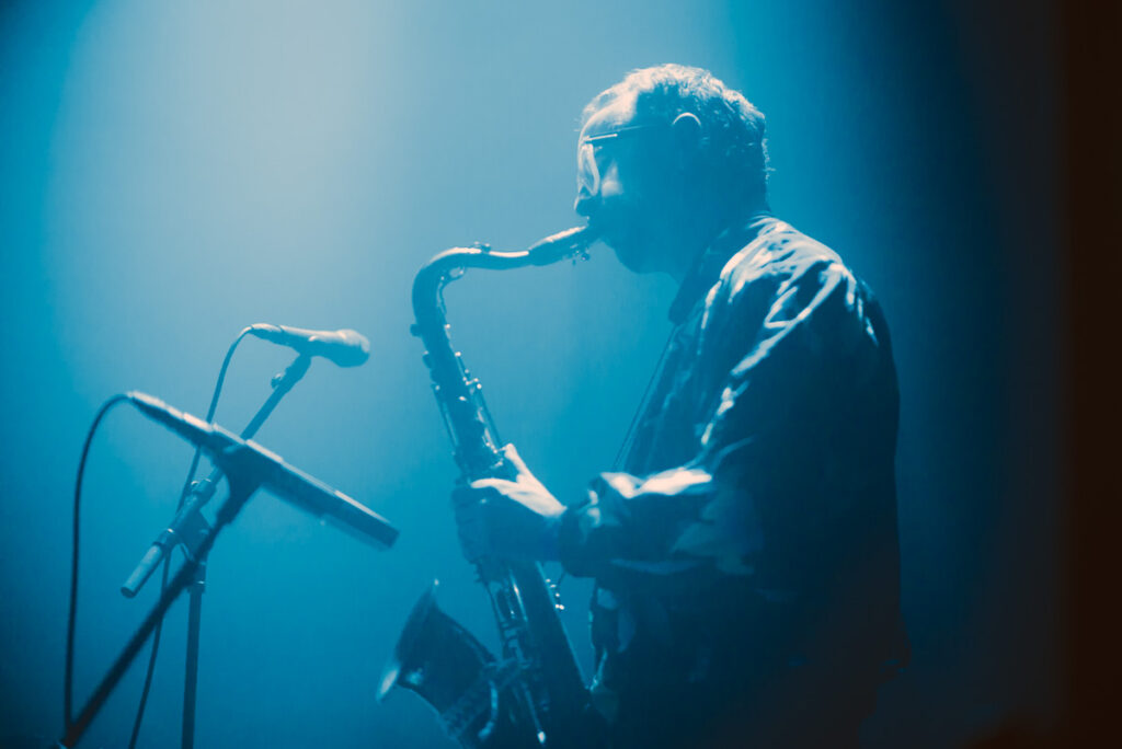 Ze begonnen energiek met twee tracks uit Bajascillators uit 2022. Pulserende, repetitieve en traag evoluerende synth-sequenties lanceerden ons richting hogere sferen terwijl de sax zalvend tussen de staccato klanken heen walste. Goed begin!