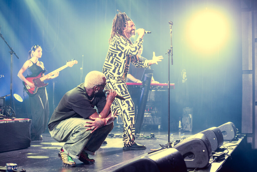 Wie nooit last gehad heeft van awkward momenten op een podium (of dat denken we toch) is Fred Gata. Gata is niet alleen een heel fijne man, het is ook een echt podiumbeest. Hij is een van de gasten op Kundes plaat – naast Helena Casella, Tenisshu en Okon – en samen met Joram bracht hij Bittersweet, een stomend nummer waarin funk en hiphop hand in hand over het podium struinen, zij het met slepende pas.