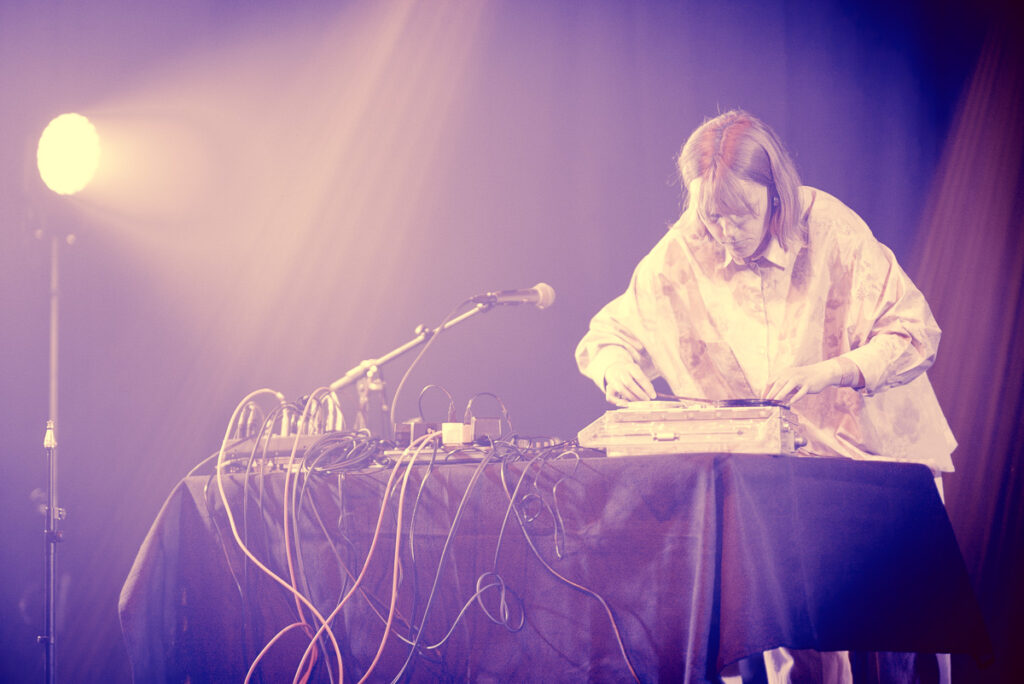 Een tape-loop met het geluid van een zingende merel vergezeld van ijle synthklanken, zo begint de set van Natasha. Meteen is duidelijk wat je de komende 40 minuten mag verwachten: ingetogen verstilling vertaald in fragiele en iets minder fragiele klanken. Hoewel Pirard veelal uit haar meest recente album put, zijn haar optredens toch altijd een beetje anders. In het ene nummer is het de analoge tape die de spil vormt waarrond het nummer cirkelt, een andere keer is dat het wat vreemde strijkinstrument in de vorm van een omgekeerd kruis dan wel Pirards stem.