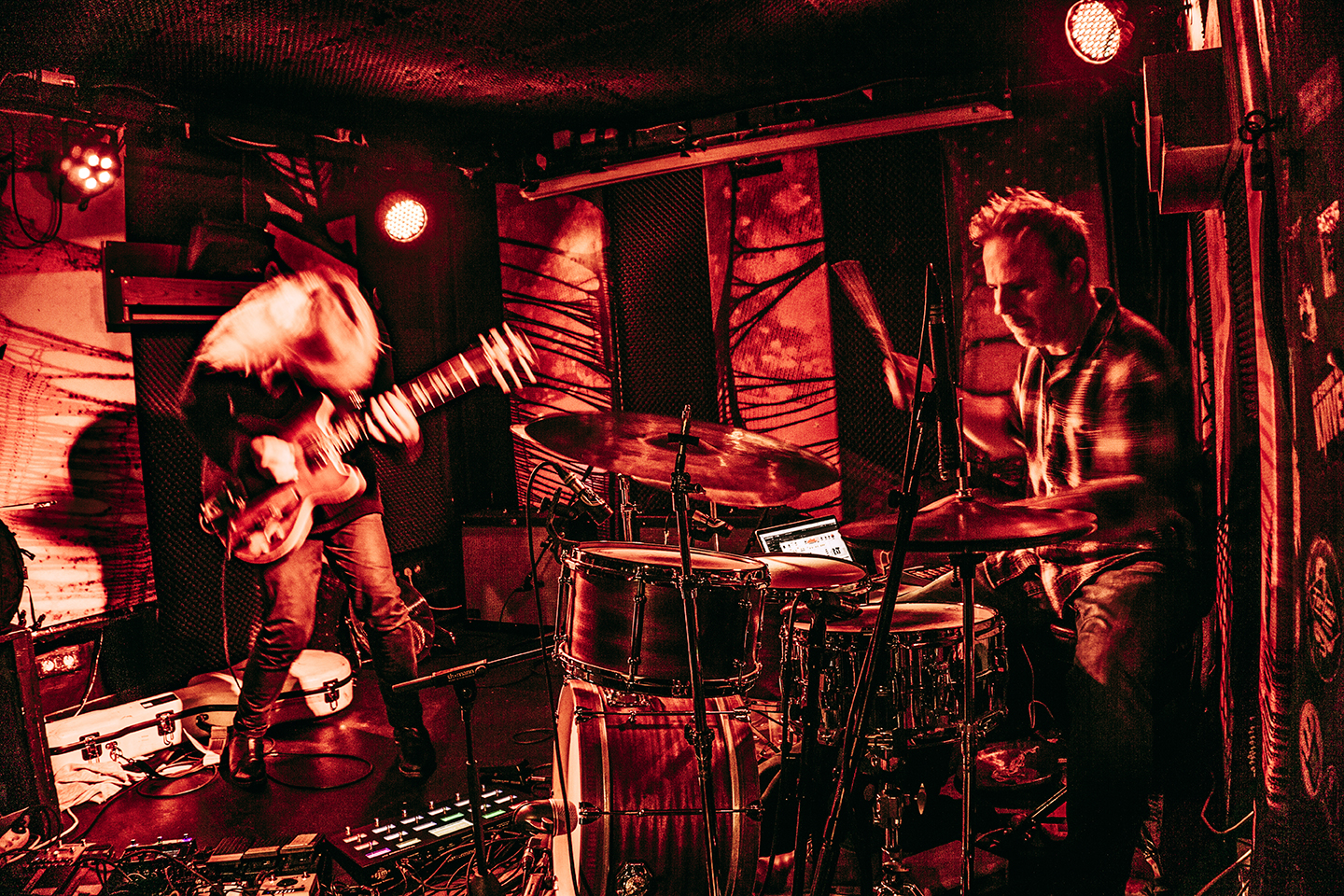 Er was weinig volk, maar dat deerde niet. Ze voerden het (letterlijk) onderkoelde publiek mee in een sonische trip. Gitaarklanken botsen en klotsen, terwijl drums richting alle hoeken van de kamer uitgingen. En dan werd het even stiller en Stian nam de strijkstok. Of zong door zijn pickups. Engelengeluid en het begin van een nieuwe muzikale reis langs onontgonnen gebieden.