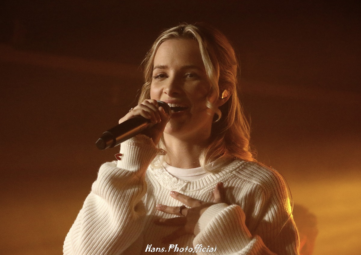 Haar met Luca en Judith zelfontworpen trui mocht aan de kant en we zagen een wit topje met een uitgesneden hartje op de rug. Een litteken in hartvorm. Olivia zette dan 21st Century in waarin ze een haat-liefde verhouding met Instagram bezong. Het nieuwe Joke’s On You was om diverse redenen een hoogtepunt. Ze zocht opnieuw interactie met het publiek dat ze de titelwoorden liet instuderen en hier klonk ze best wel als Olivia Rodrigo. Het is een kantje dat ze aankan en een richting die ze niet hoeft te schuwen. Snelle pop met guitige, pikante teksten en een gezwind ritme. Het viel op dat de zaal ook meteen mee was met dit verhaal. De vorig jaar uitgebrachte single Go Now borduurde verder op het succesvolle thema. En hoe mooi is haar stem wel niet? We dachten meermaals aan Sabrina Carpenter want het nummer heeft zeker Juno-vibes bij de popvleet.