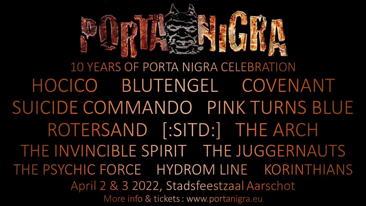 Veel minder animo op het podium was er bij The Invincible Spirit, waarbij Anja V. (synths) en Thomas Lüdke (zang) nogal statisch voor het geprojecteerde logo hun ding deden. Wel, als dat ‘ding’ goed is, is dat zeker niets om op af te haken. Het duo doet gewoon, zonder nonsens en overbodigheden, waar ze goed in zijn. Sober qua show, maar nog steeds een sterk geluid. Nog steeds, inderdaad, want ze zijn al sinds 1986 bezig en scoorden toen al vrijwel meteen een hit met Push. De band lag enkele jaren stil, maar is ondertussen alweer aan een ware revival toe. Ook hier op Porta Nigra veroorzaakte deze een spontaan, enthousiast danssfeertje in de zaal. Miss V. zorgt voor psychedelisch toetswerk in Irregular Times en een uitdagend geluid in Provoke You, waar de rauw ruwe spoken words van Lüdke intens tussen dringen. Duistere woorden, zoals in Devil Dance en Hate You, nemen onder dreigende synths het publiek op sleeptouw doorheen de hele set. “Devils are dancing all over the place!”