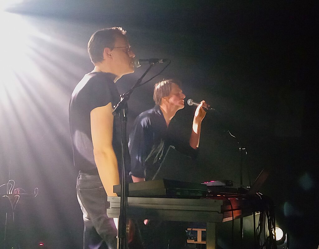 Het feit dat beiden de liedjes samen zongen (met een lading effecten), gaf het optreden een origineel tintje. Muzikaal tappen de twee uit het jaren 80-synthwavevat, waarbij we echo’s hoorden van de jonge Depeche Mode, O.M.D. en Soft Cell, gecombineerd met de melancholische underground wave van Clan of Xymox, Psyche en Twice a Man.
