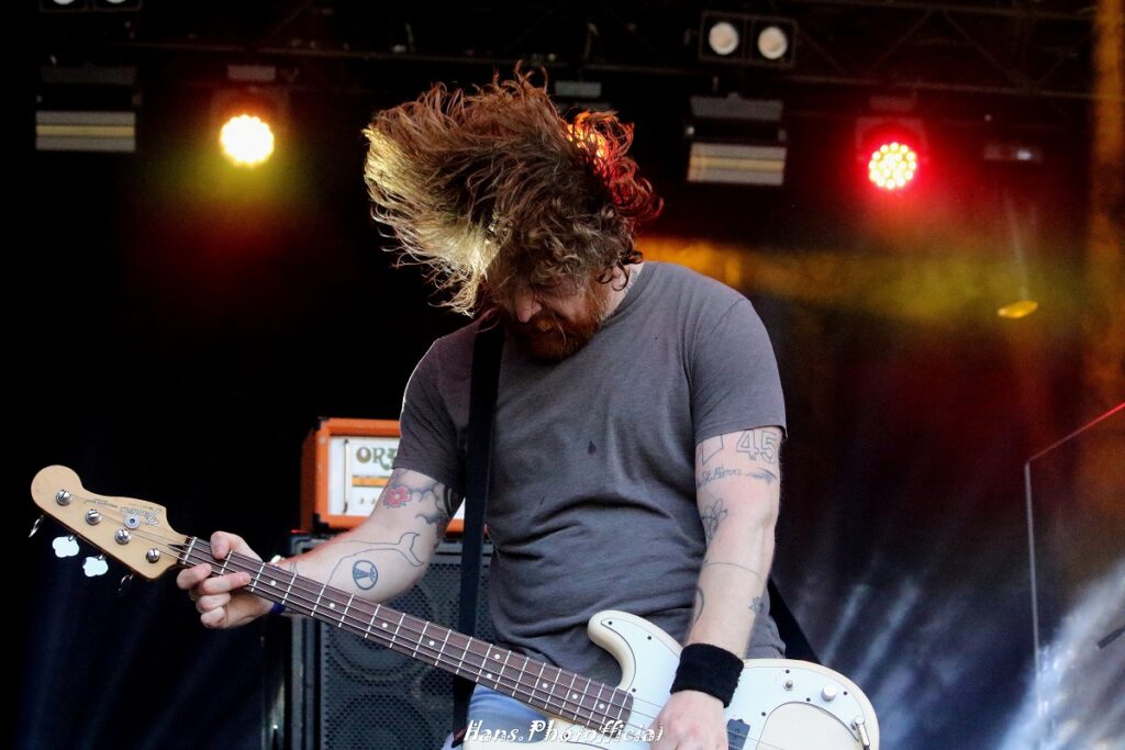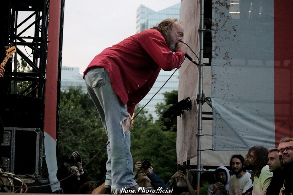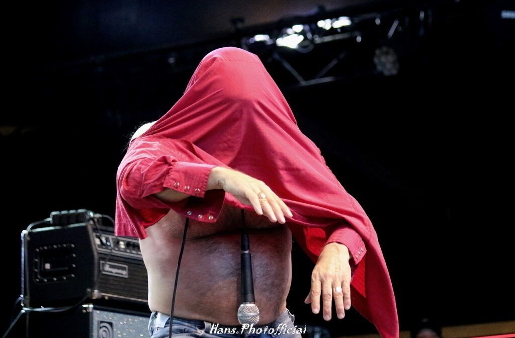 Ondertussen vielen buiten de festivalgangers als vliegen want er was behoorlijk wat mis met de kwaliteit van de frieten op het terrein. Zo wisten een paar festivalgangers het niet te rekken tot de langverwachte komst van The Jesus Lizard. Wie niet voor frieten koos kon zich vergapen aan de moshpits die aan –en afrolden tijdens vooral de openingsfase van het concert. Dat lag natuurlijk aan de fratsen van de nog steeds onnavolgbare David Yow. Openen deed The Lizard met Seasick en de steeds herhaalde tekstflard “I can swim” liet de 64-jarige frontman meteen het publiek induiken, mits hulp van een paar fotografen om hem van het podium tot bij de bloeddorstige fans te brengen tijdens de zoveelste comeback van de band. Sinds Dour 1996 stonden ze immers slechts 4 keer op een Belgisch podium, en dat was 3 keer op Pukkelpop.