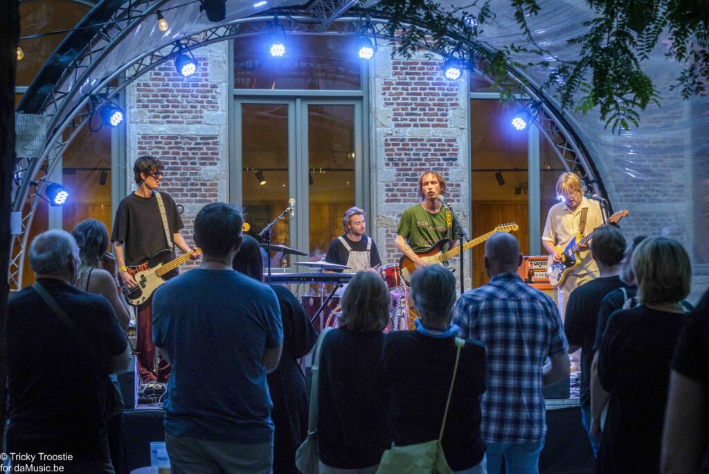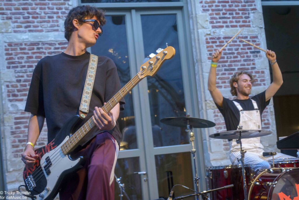“Het volgende nummer gaat over de bloemetjes” en een geweldig Flowers ronkte over het plein, snel gevolgd door Waterslide, met met die machtig vette baslijn van Wout Houbart, weerom gul gitaargeweld van Goddeeris en Vandenabeele en hoe lekker luid en performant waren die drums van Ward Van Echelpoel? Jongens!