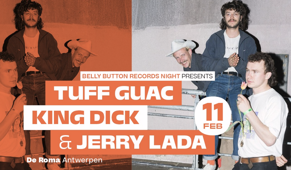 Na deze opener werd de toon van de triple bill van Belly Button Records gezet voor een speelse avond waar rommelige riffs menig lichaam deden schudden van geluk. De bands delen niet alleen het label, maar ook de bezetting. Zo stuurt Jasper Suys Jerry Lada als eigenaar en neemt hij soms plaats bij Tuff Guac als bassist. Ook Wim De Busser laat bij de hoofdact van deze avond zijn toetsenwerk spreken. Maar eerst mocht hij met King Dick laten zien aan de bijna volle foyer van De Roma, dat ze de perfecte opvolger waren van Jerry Lada. Dat deden ze behoedzaam met een dromerig walsje uit het debuut New King Dick. Vervolgens werd de poort helemaal opengezet.