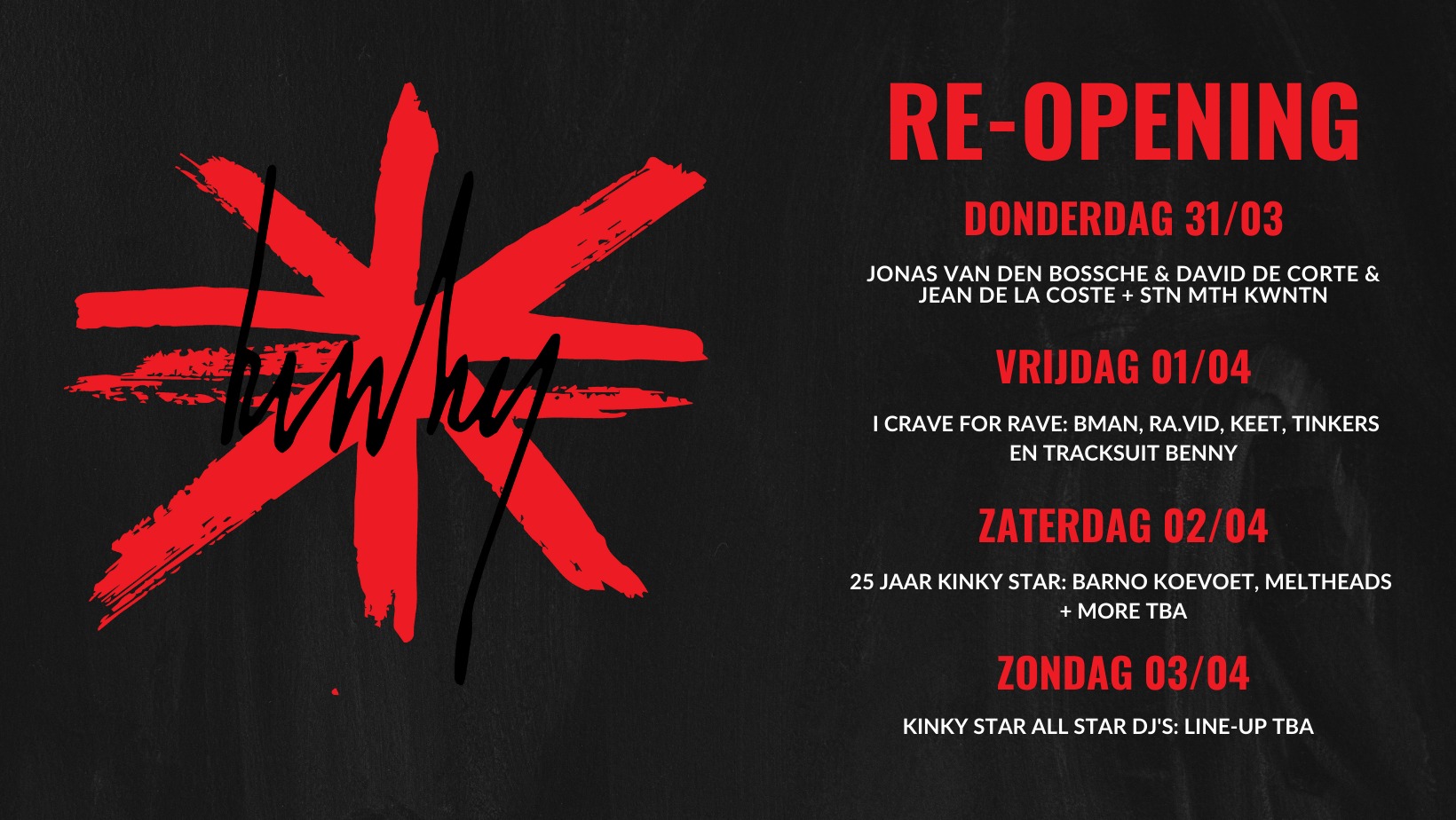 • Zondag 3/4: Kinky Star All Star dj’s: line-up TBA