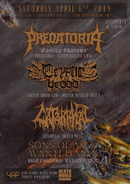 De vijfkoppige Limburgse deathmetal band Predatoria is al actief sinds 2004. Binnenkort verschijnt hun nieuwe plaat Casting Shadows. Ze stellen het album voor op 6 april in het YAP vzw in Leopoldsburg.