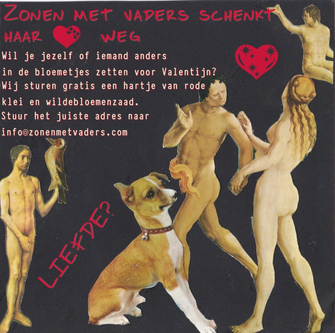 Als je een geliefde wil verrassen met een cadeautje, stuur dan voor 7/2 een mailtje naar info@zonenmetvaders.com. Stuur gerust een persoonlijke boodschap mee die samen met het hartje afgeleverd mag worden. Dat kan ook anoniem. Geen schrijf-inspiratie? Dan kruipt een van de Zonen Met Vaders in zijn pen om warme woorden toe te voegen.
