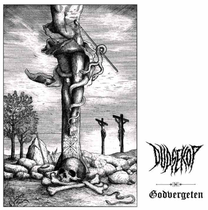 Een aanzwellende gitaarintro krijgt theatraliteit mee van zodra de drums klinken. De waanzin komt pas op het ogenblik dat de eerste scream klinkt, waarna de razernij in Godvergeten losbarst. Scherpe riffs snijden tegen diep blaffende vocalen waarin af en toe melodische adempauzes genomen worden. Dat dit black metal van een ferm kaliber is, zoals we gewoon zijn van Dudsekop, wordt meteen duidelijk.