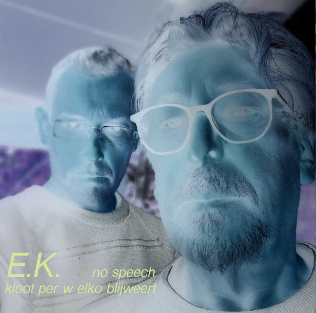 Wat zijn we opgelucht dat we onze naam niet zien opduiken in het lijstje van vrouwen, die op het album E.K. No Speech hun verhaal doen! Ze doen dat via de muzikale goeroe’s Kloot Per W (gitaar, synths, stem en andere instrumenten) en Elko Blijweert (gitaar, synths, stem). Voor bijkomende zanglijnen konden de heren rekenen op Echomoon (Mona Perwez, kind van Kloot).